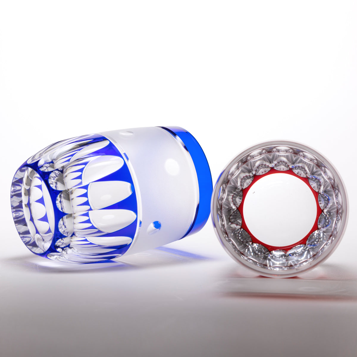 工芸士が手作業でカットした江戸切子。 伝統的あるいは創作された文様で構成されています。光の拡散性の高いソーダ硝子を生地に使用しています。彩鳳でデザインから制作まで一貫しておこなっています。