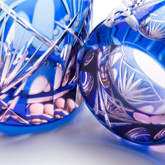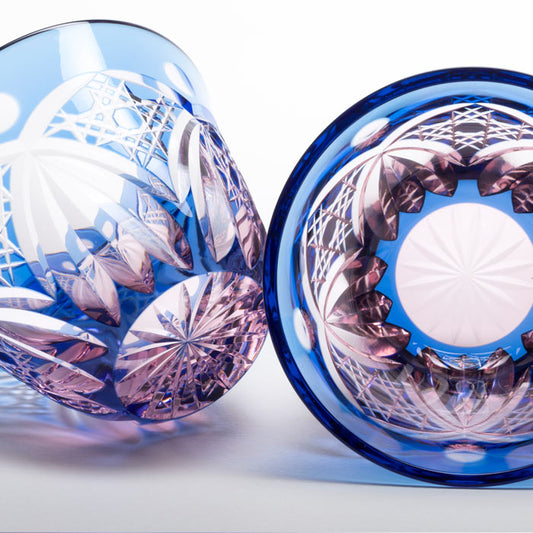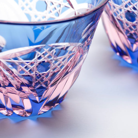 M-58-BP 八角篭目文様 ぐい呑 ブルーピンク 木箱入