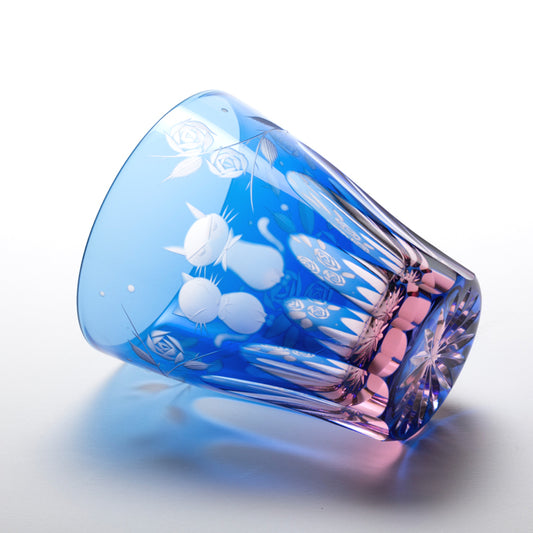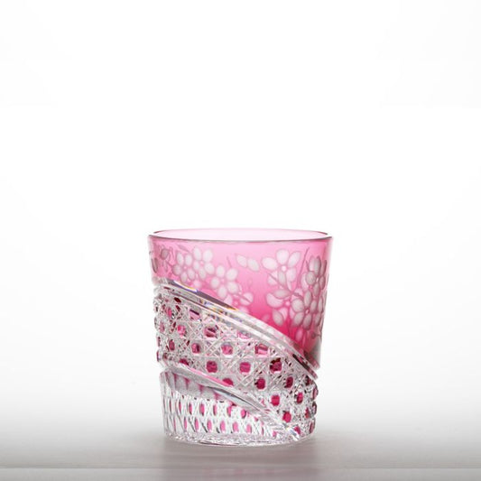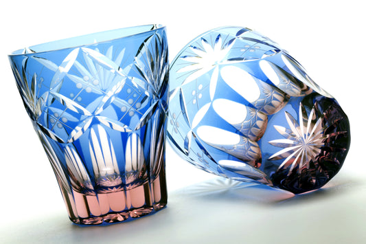 M-8573-BP 七宝笹の葉文様 ミニオールド ブルーピンク 江戸切子 直販限定品