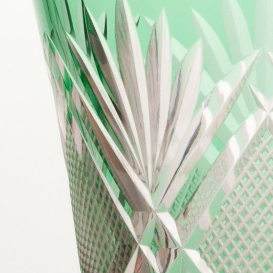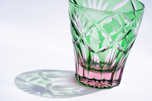 M-8573-PG 七宝笹の葉文様 ミニオールド ピンクグリーン 江戸切子 直販限定品