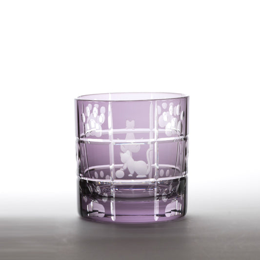M-8573-V 七宝笹の葉文様 ミニオールド ムラサキ 江戸切子 直販限定品