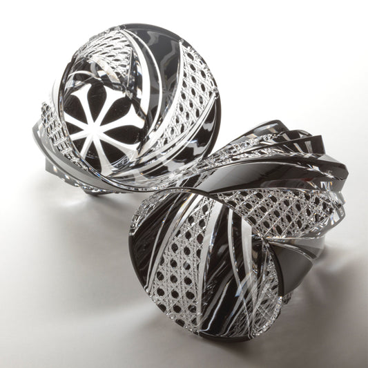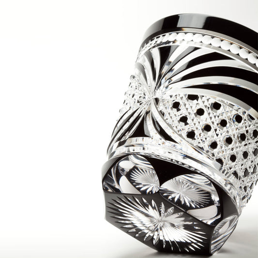 M-2110BK 縞八角篭目文様 ビアグラス 黒