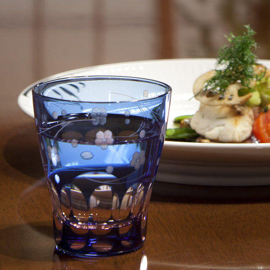 M-8573-BP 七宝笹の葉文様 ミニオールド ブルーピンク 江戸切子 直販限定品