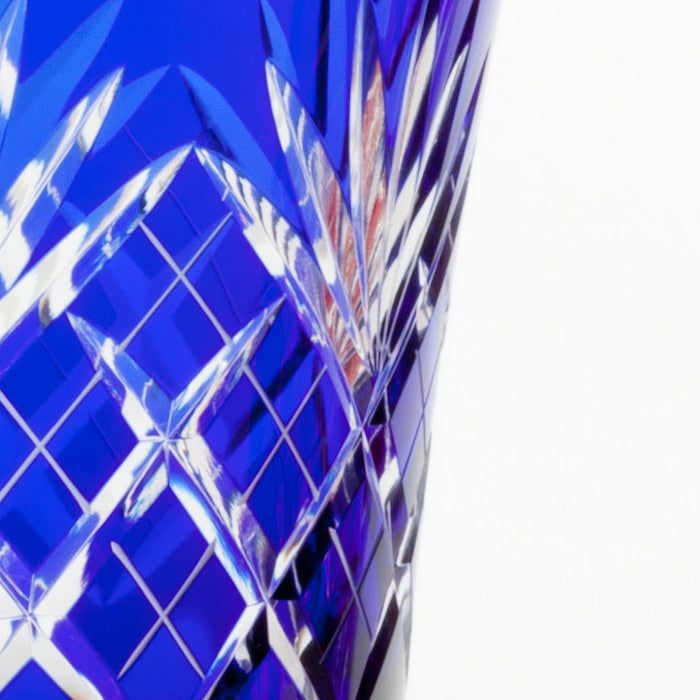 工芸士が手作業でカットした江戸切子。 伝統的あるいは創作された文様で構成されています。光の拡散性の高いソーダ硝子を生地に使用しています。彩鳳でデザインから制作まで一貫しておこなっています。