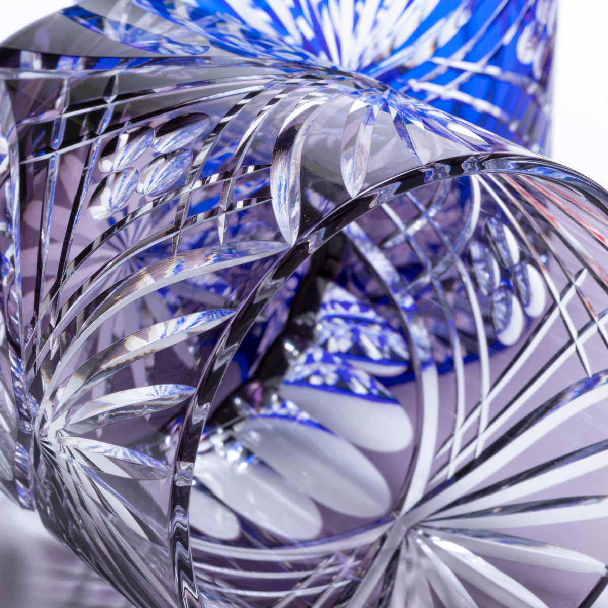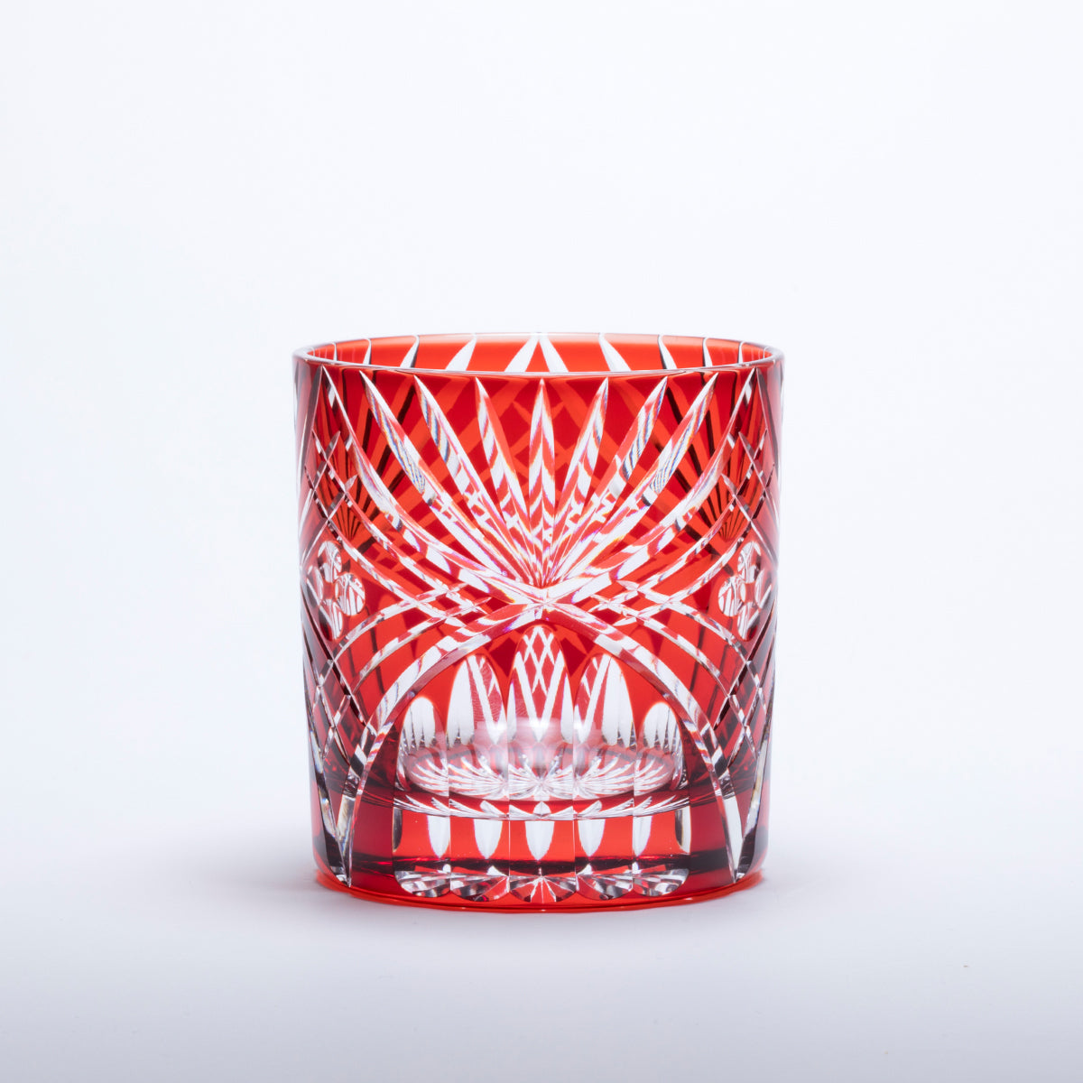 工芸士が手作業でカットした江戸切子。 伝統的あるいは創作された文様で構成されています。光の拡散性の高いソーダ硝子を生地に使用しています。彩鳳でデザインから制作まで一貫しておこなっています。