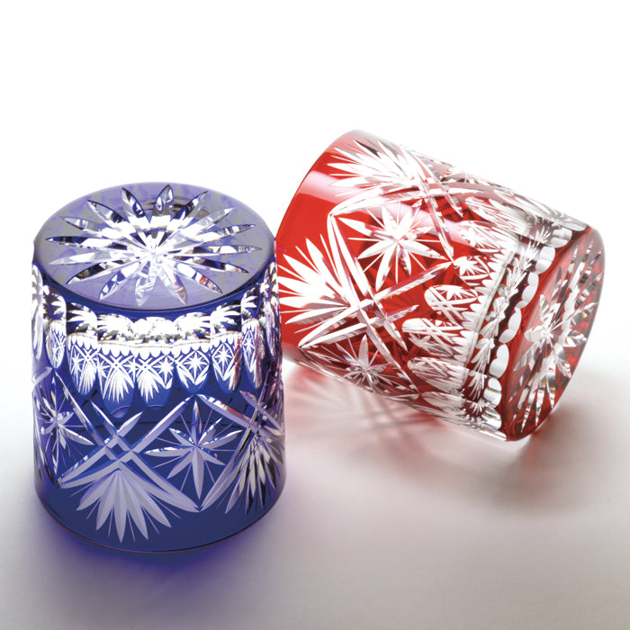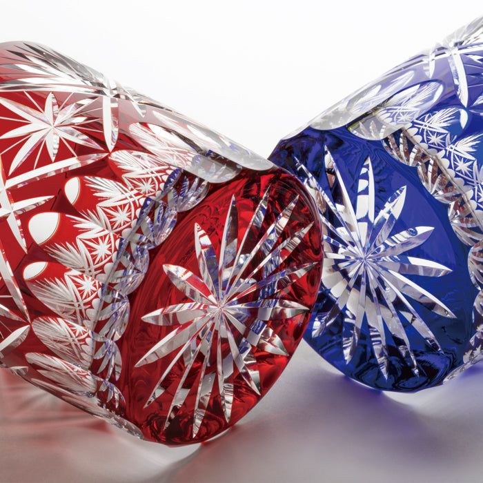 工芸士が手作業でカットした江戸切子。 伝統的あるいは創作された文様で構成されています。光の拡散性の高いソーダ硝子を生地に使用しています。彩鳳でデザインから制作まで一貫しておこなっています。