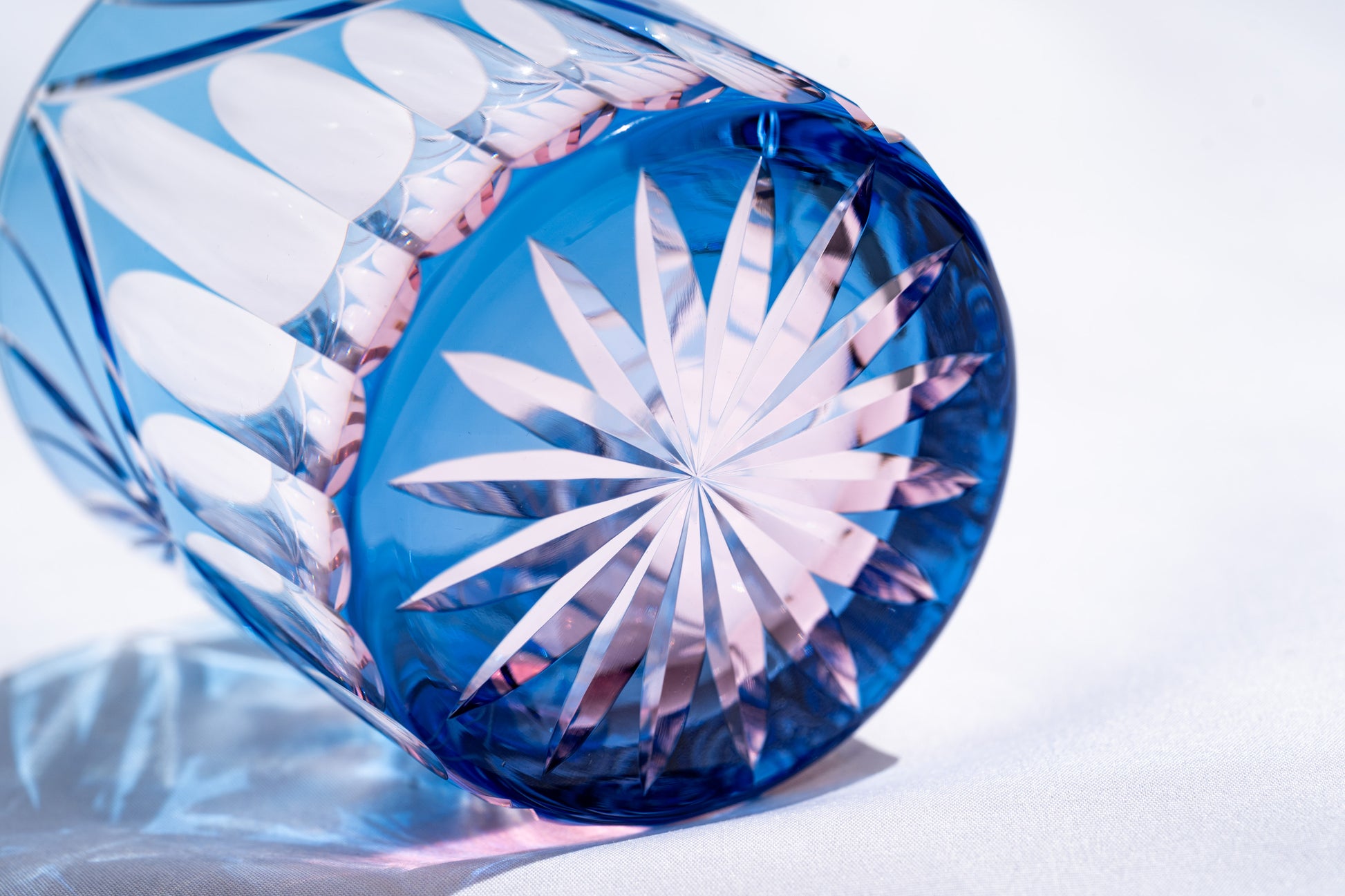工芸士が手作業でカットした江戸切子。 伝統的あるいは創作された文様で構成されています。光の拡散性の高いソーダ硝子を生地に使用しています。彩鳳でデザインから制作まで一貫しておこなっています。
