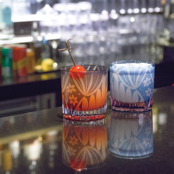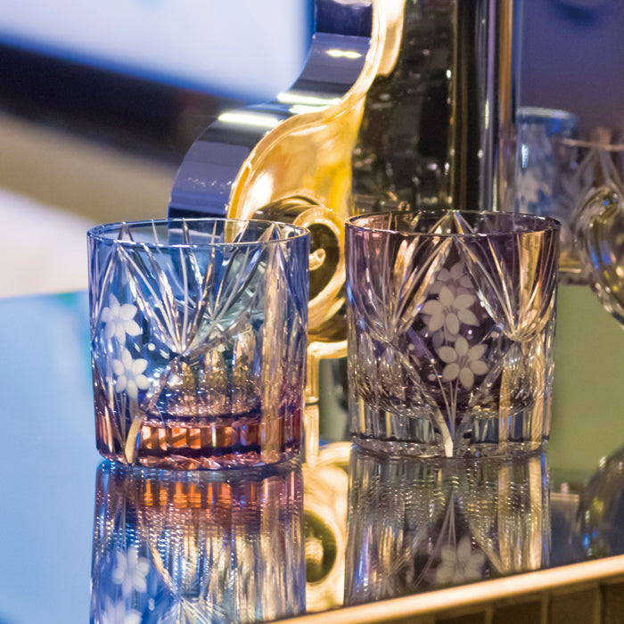 工芸士が手作業でカットした江戸切子。 伝統的な、あるいは創作された文様で構成されています。光の拡散性の高いソーダ硝子を生地に使用しています。彩鳳でデザインから制作まで一貫しておこなっています。