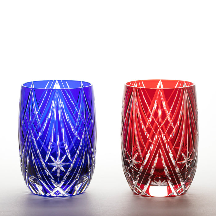 伝統文様の「剣菱」で枠を表現し上に向かって伸びる星を入れ込んだ伝統文様の合わせで現代風にデザインされた江戸切子です。