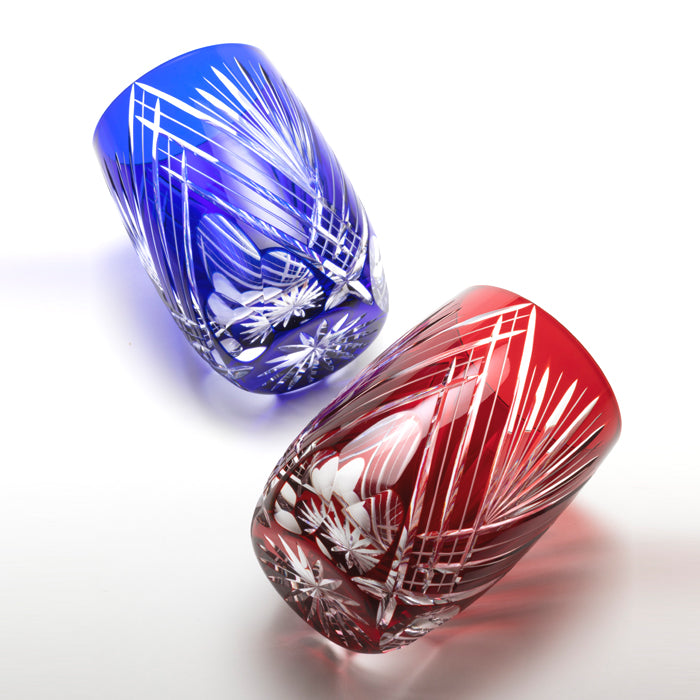 工芸士が手作業でカットした江戸切子。 伝統的あるいは創作された文様で構成されています。光の拡散性の高いソーダ硝子を生地に使用しています。彩鳳でデザインから制作まで一貫しておこなっています。