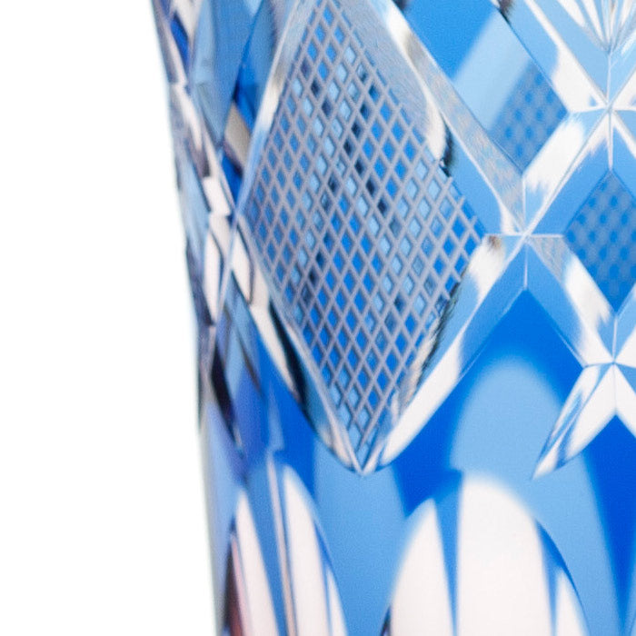 伝統文様「剣菱」の中に、江戸切子の伝統文様「魚子」をあしらった、江戸切子らしい伝統的なデザインのグラスです。