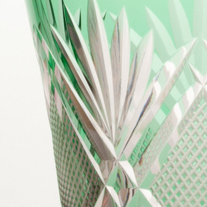 伝統文様「剣菱」の中に、江戸切子の伝統文様「魚子」をあしらった、江戸切子らしい伝統的なデザインのグラスです。