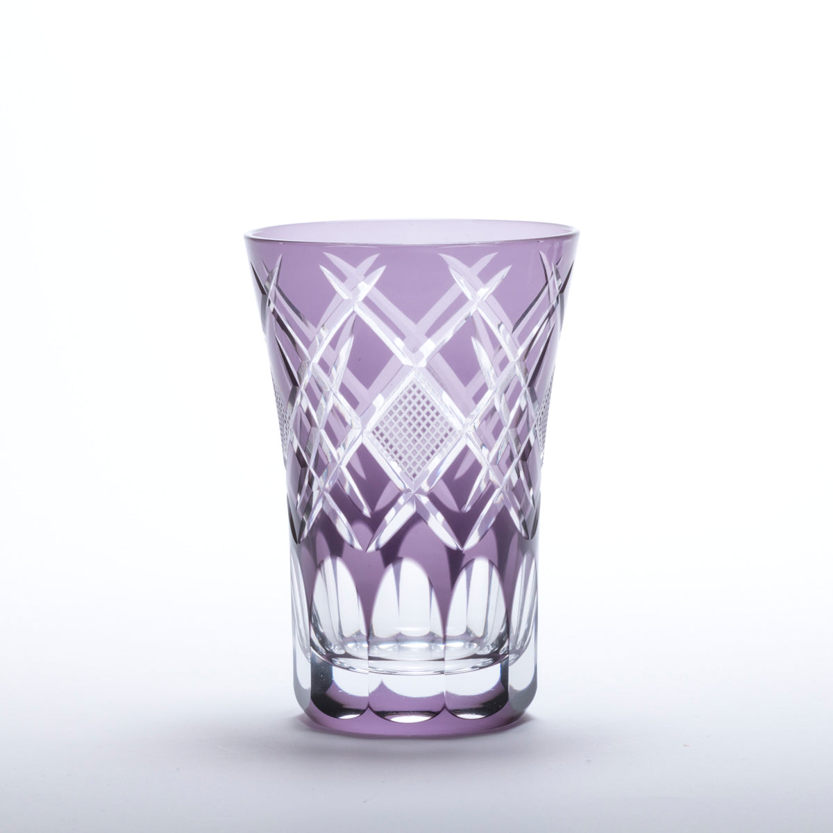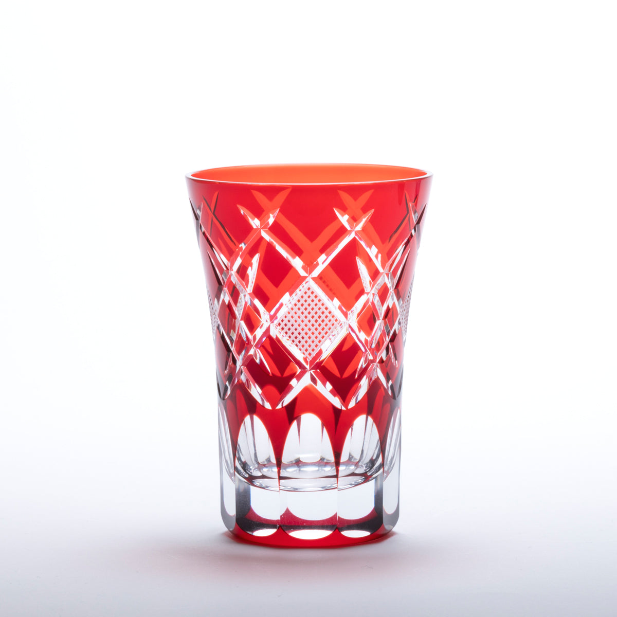江戸切子の伝統文様「魚子文様」を矢来文様で形作った菱形で囲ったデザインに仕上げたグラスです。