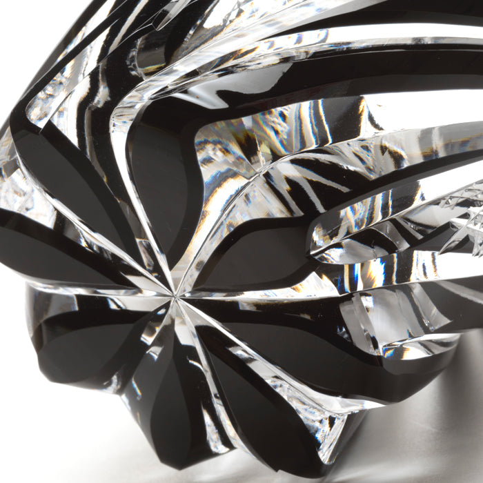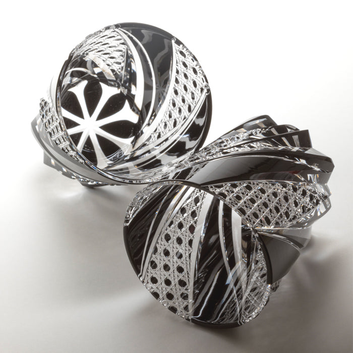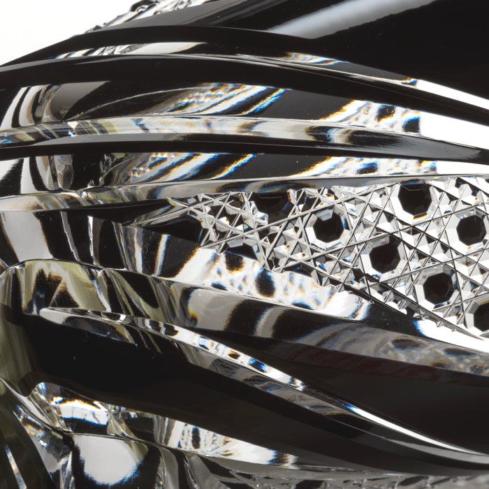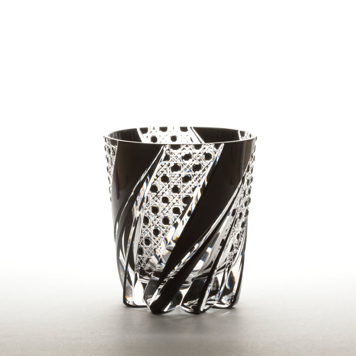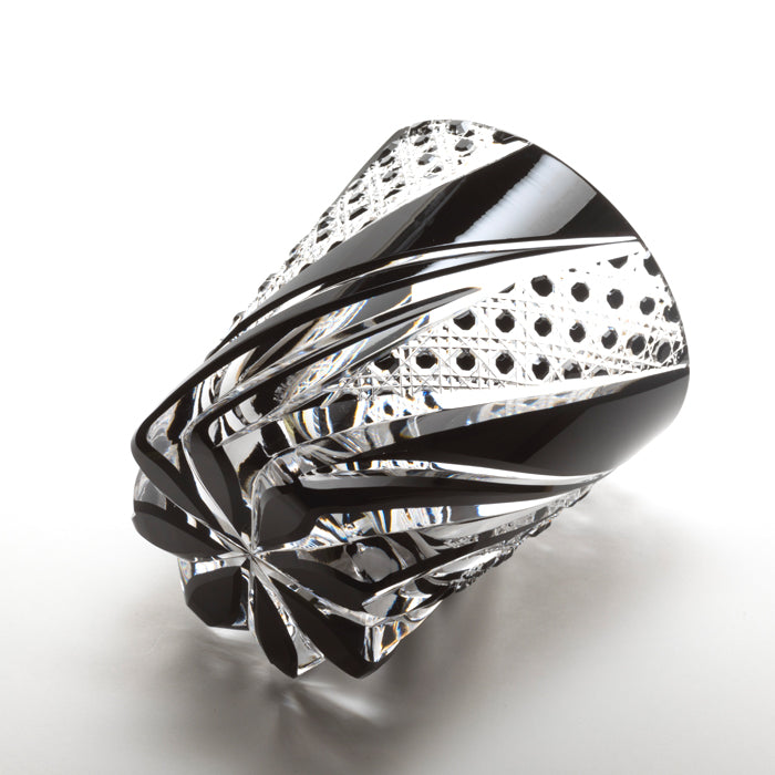 江戸切子の中で最も難しい漆黒の硝子に、「八角篭目文様」をあしらった熟練の業が輝る逸品です。