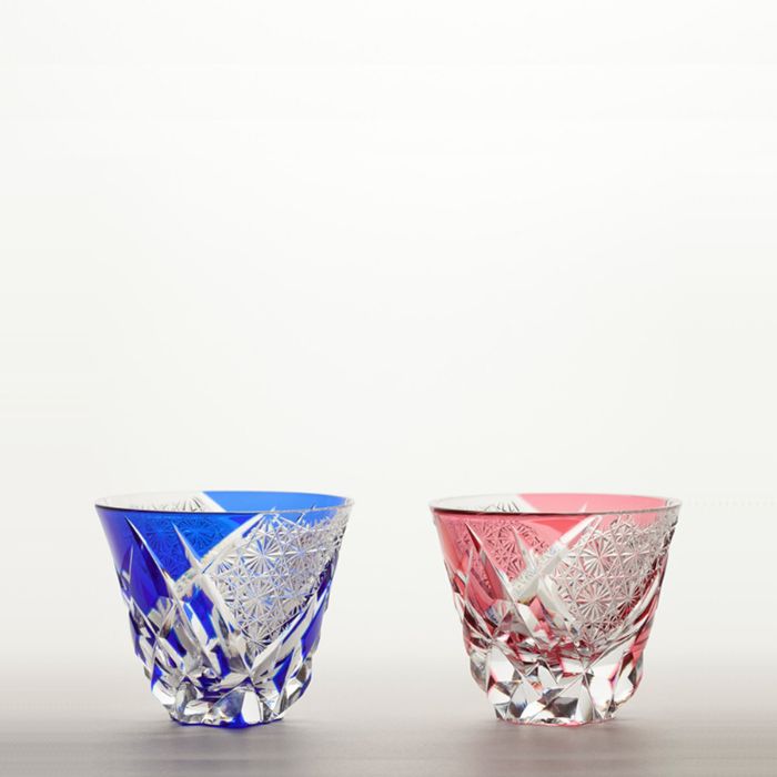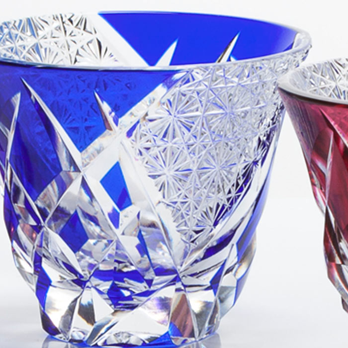 工芸士が手作業で彫削した江戸切子。 伝統的あるいは創作された文様で構成されています。光の拡散性の高いクリスタルガラスを生地に使用しています。彩鳳でデザインから制作まで一貫しておこなっています。