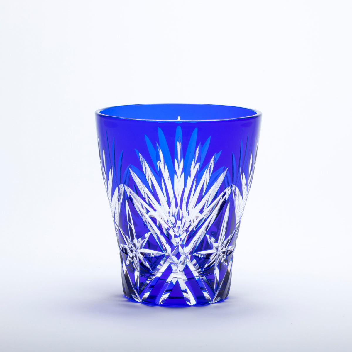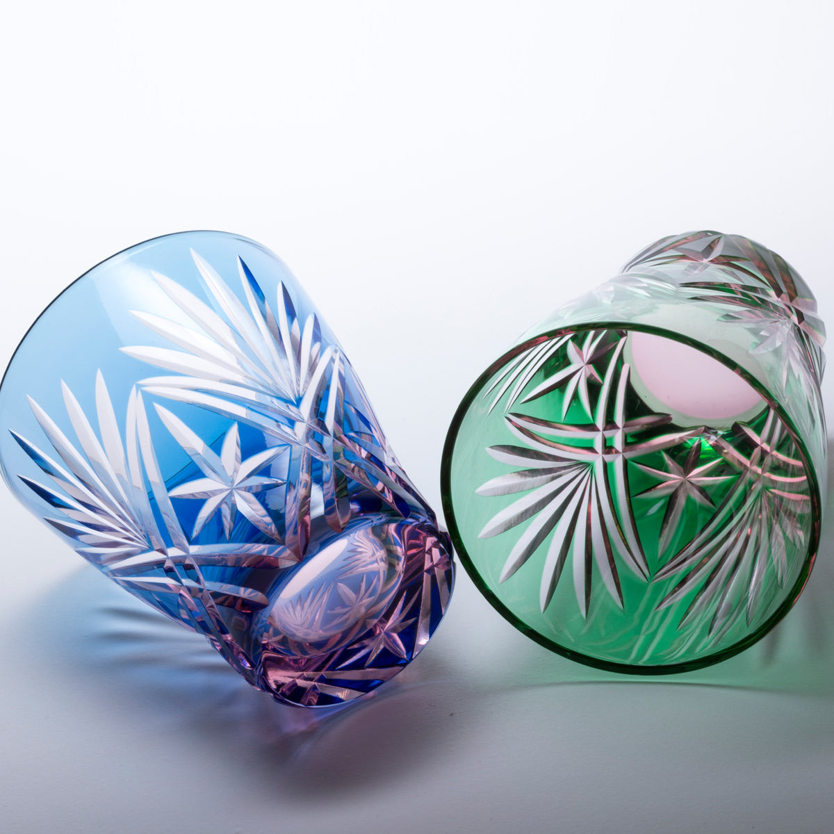 工芸士が手作業でカットした江戸切子。 伝統的あるいは創作された文様で構成されています。光の拡散性の高いソーダ硝子を生地に使用しています。彩鳳でデザインから制作まで一貫しておこなっています。