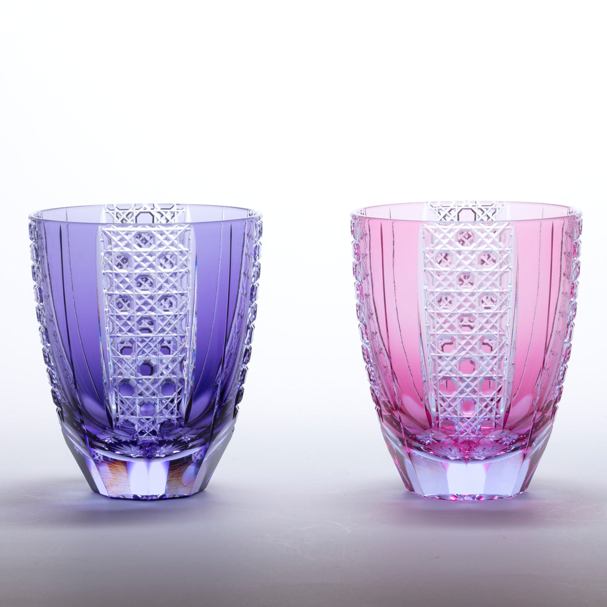 工芸士が手作業で彫削した江戸切子。 伝統的あるいは創作された文様で構成されています。光の拡散性の高いクリスタルガラスを生地に使用しています。彩鳳でデザインから制作まで一貫しておこなっています。